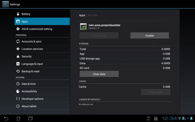 | current | 11:39, 28 March 2012 | 1,280 × 800 (110 KB) | Kyau (talk | contribs) | Example of how to Disable and Force stop the ASUS Sync application in preperation of rooting your device. |